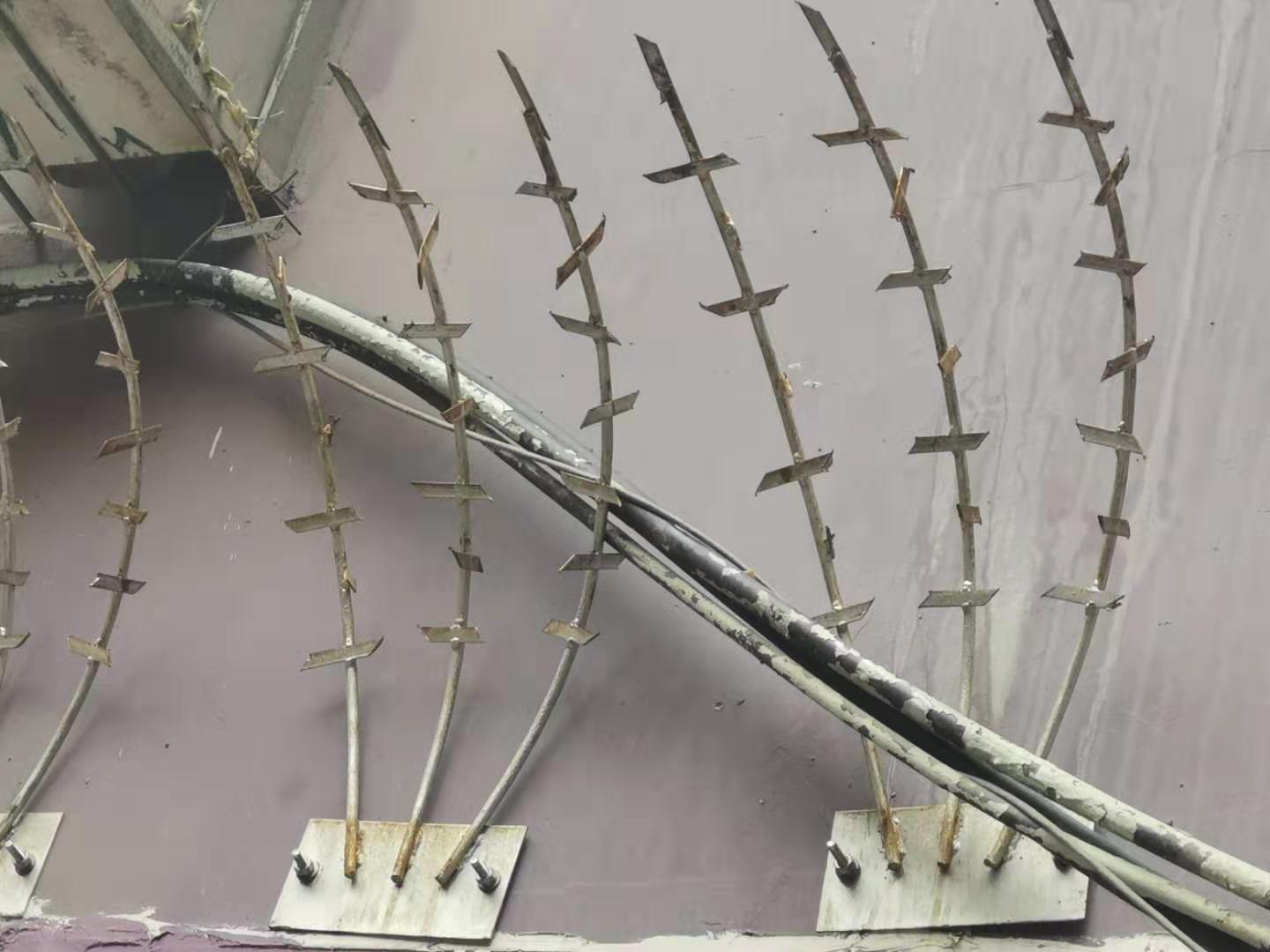 圍墻防爬刺是一種新型的防盜產(chǎn)品,本實(shí)用新型裝置安裝在建筑物體外墻的落水管上,可以有效的防止盜賊利用落水管攀爬入室盜竊,保證了高層住戶(hù)的安全,且安裝方便,通用性強(qiáng),成本的,安全性高.本產(chǎn)品對(duì)于小區(qū)上水管, 燃?xì)夤埽?防攀爬,防盜效果佳,對(duì)小偷有很強(qiáng)的威懾性。