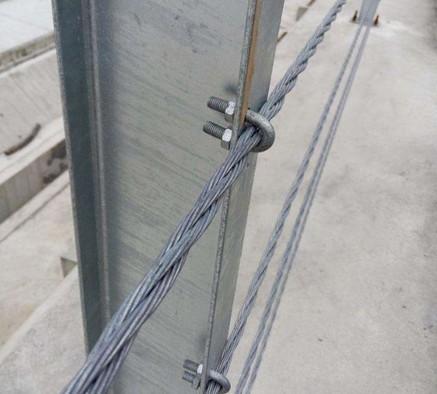 路基剛性防護網:有效防止異物入侵高鐵防止造成危險,隨著高鐵的建設一些必備的防護產品也將隨之出臺,高速鐵路防異物入侵造成不必要的隨時與傷害設計院專門針對山區高鐵制定---剛性防護網,旨在改善防護網的抗沖擊能力和減緩異物沖擊能力。它包括沿線路延伸方向間隔布設的型鋼立柱、柔性防護網(采用鋅鋁合金)材質常年在室外生存保證使用時間,各型鋼立柱的下部埋置固定于擋土墻內或邊坡平臺下的基礎內,所述型鋼立柱與其上沿縱向間隔布設鋼絲繩構成柱繩支撐體系,位于線路延伸方向兩端的兩根型鋼立柱分別與各鋼絲繩的兩端固定連接,其余型鋼立柱上則設有供鋼絲繩穿過的孔。